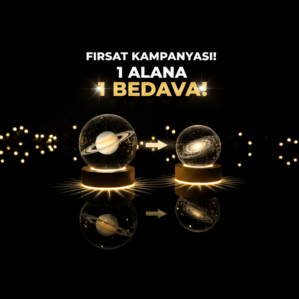 Tüm Modellerde Geçerli: Dünya, Ay, Satürn, Samanyolu Galaksisi... Kampanya tüm ahşap altlıklı kristal küre modellerimizde geçerlidir. Hayalinizdeki kombinasyonu yaratın!