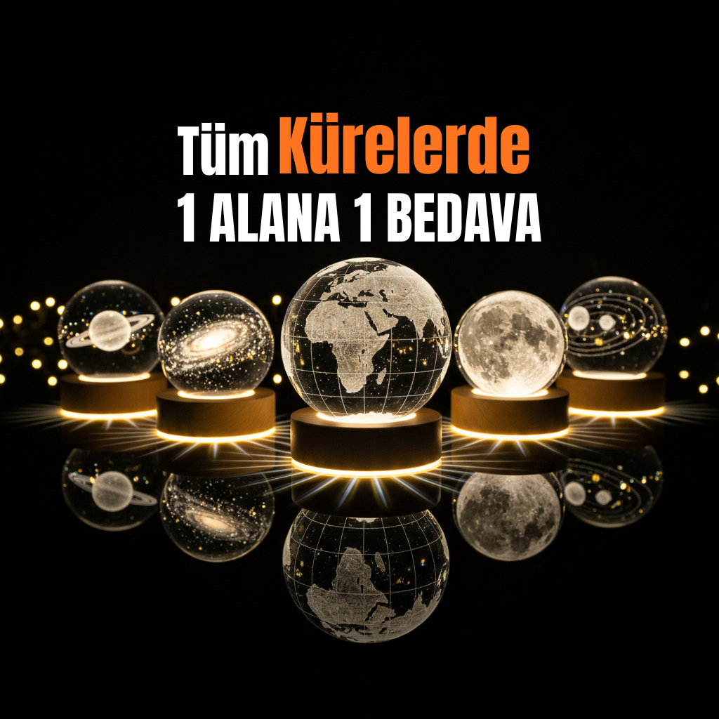 Tüm Modellerde Geçerli: Dünya, Ay, Satürn, Samanyolu Galaksisi... Kampanya tüm ahşap altlıklı kristal küre modellerimizde geçerlidir. Hayalinizdeki kombinasyonu yaratın!